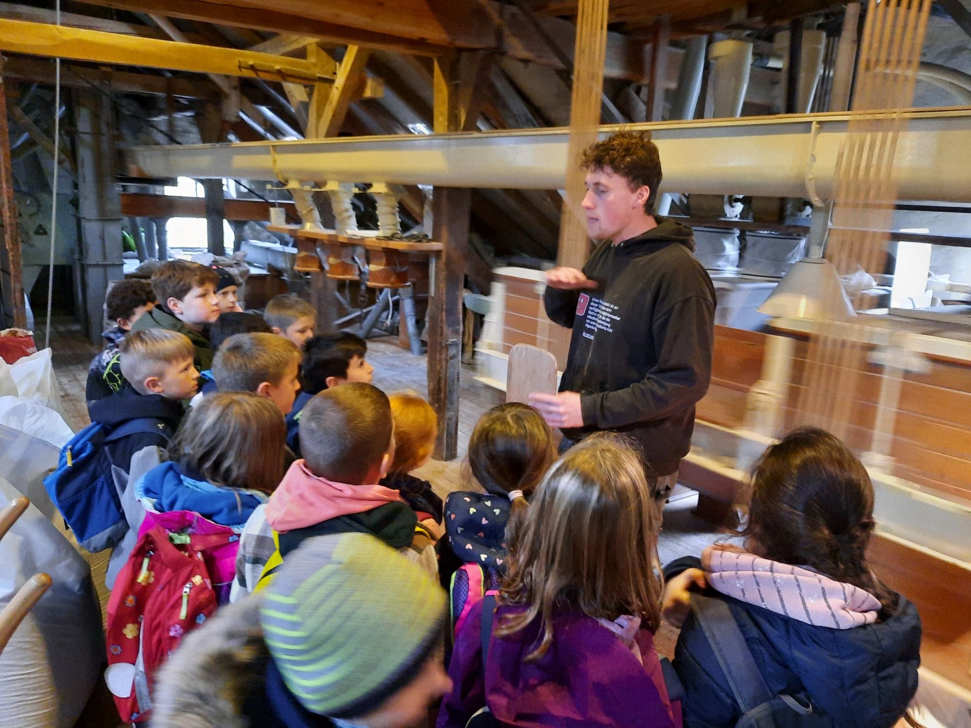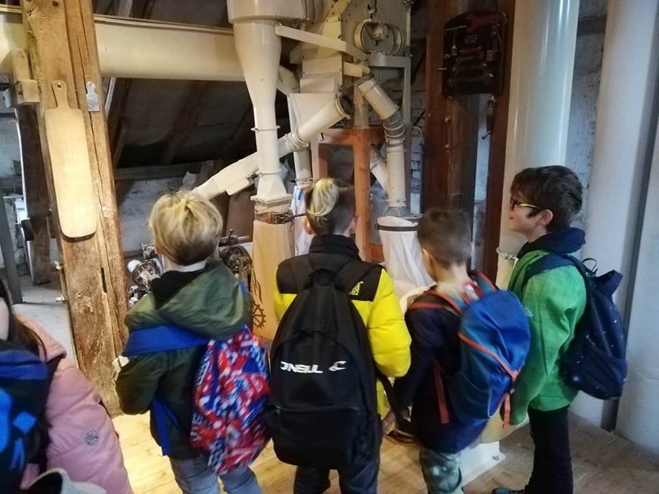 Heute haben die dritten Klassen einen Ausflug zur Sundwiger Mühle gemacht. Die Kinder wurden in die Geheimnisse der Mehlherstellung eingeweiht, konnten Maschinen kennenlernen, Mehl probieren und im Mühlenladen stöbern. Das Highlight war natürlich die Fahrt mit dem handbetriebenen Lastenaufzug.