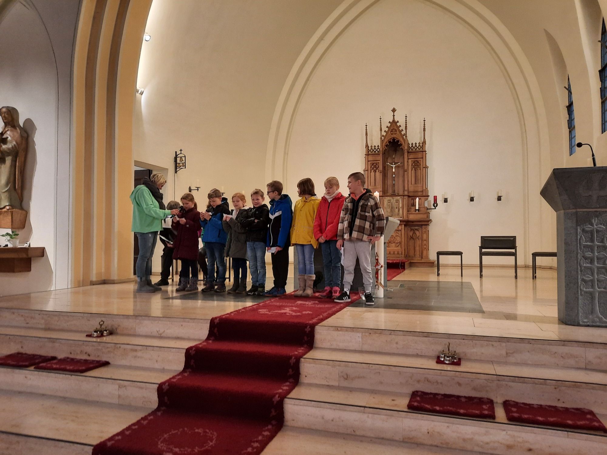 Am Donnerstag machten sich alle Schülerinnen und Schüler der Diesterweg auf den Weg in die Kirche, um einen gemeinsamen Gottesdienst zu Sankt Martin zu feiern. DIe Kinder brachten ihre selbstgebastelten Laternen mit. Mit diesem wurde ein kleiner Martinsumzug durch die Kirche gemacht.