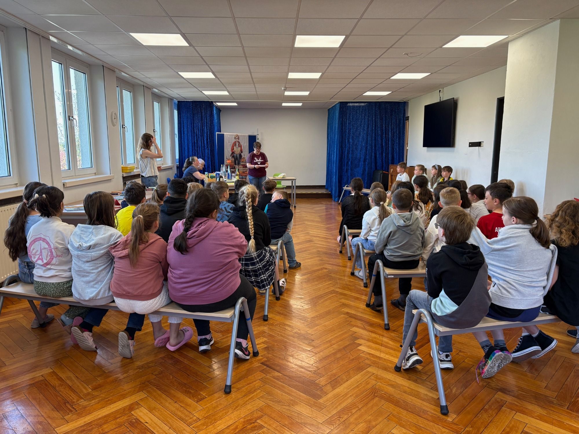 Heute fand der schulinterne Lesewettbewerb statt. Aus jeder Klasse traten zwei Kinder an und lasen zunächst einen geübten und anschließend einen ungeübten Text vor. Jede Leserin und jeder Leser hat sich große Mühe gegeben. Als Dankeschön für die Teilnahme durfte sich jedes Kind ein Buch aussuchen.