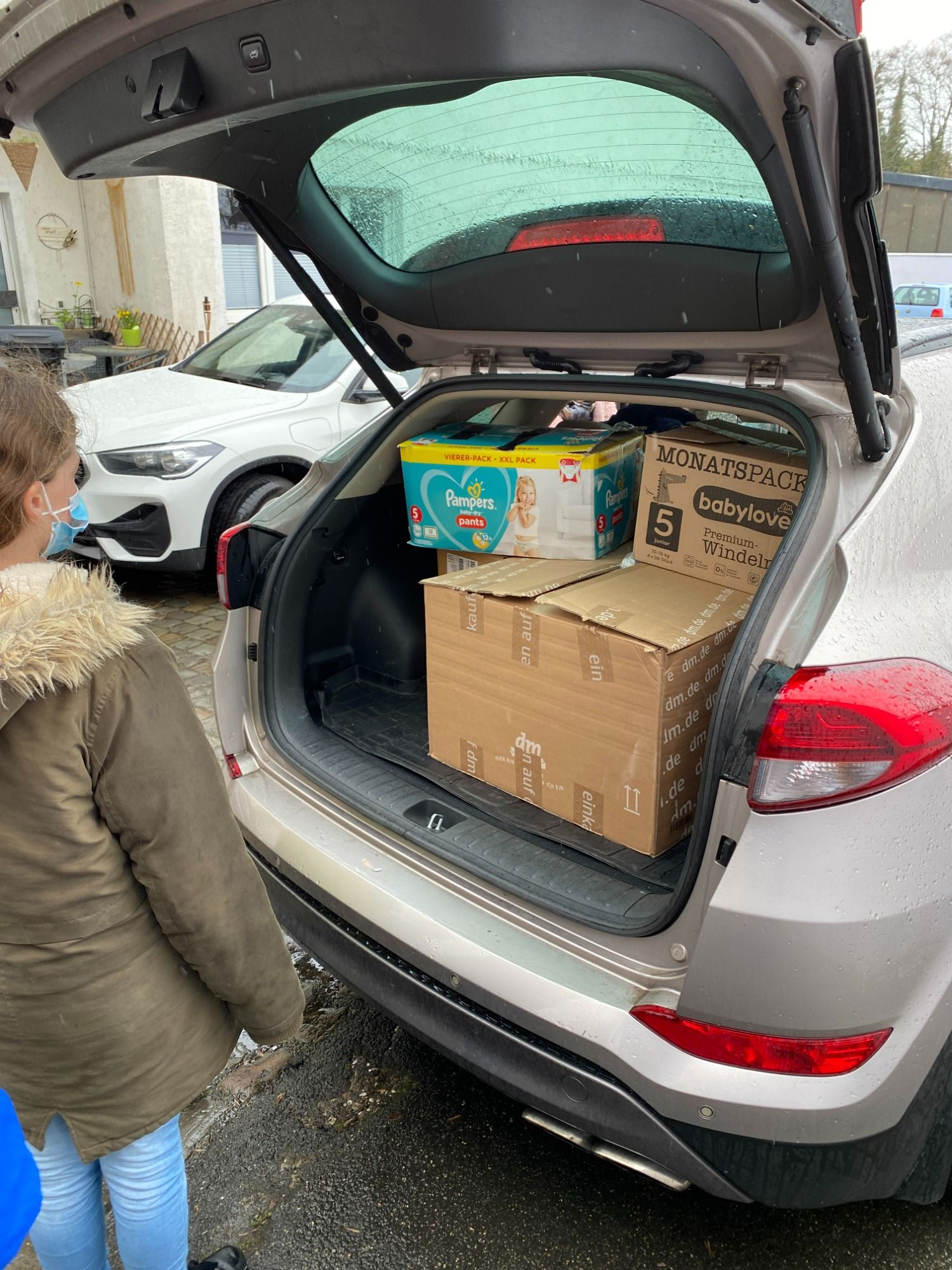 Die gesammelten Sachspenden für die Menschen aus der Ukraine wurden von der Klasse 4b überreicht.