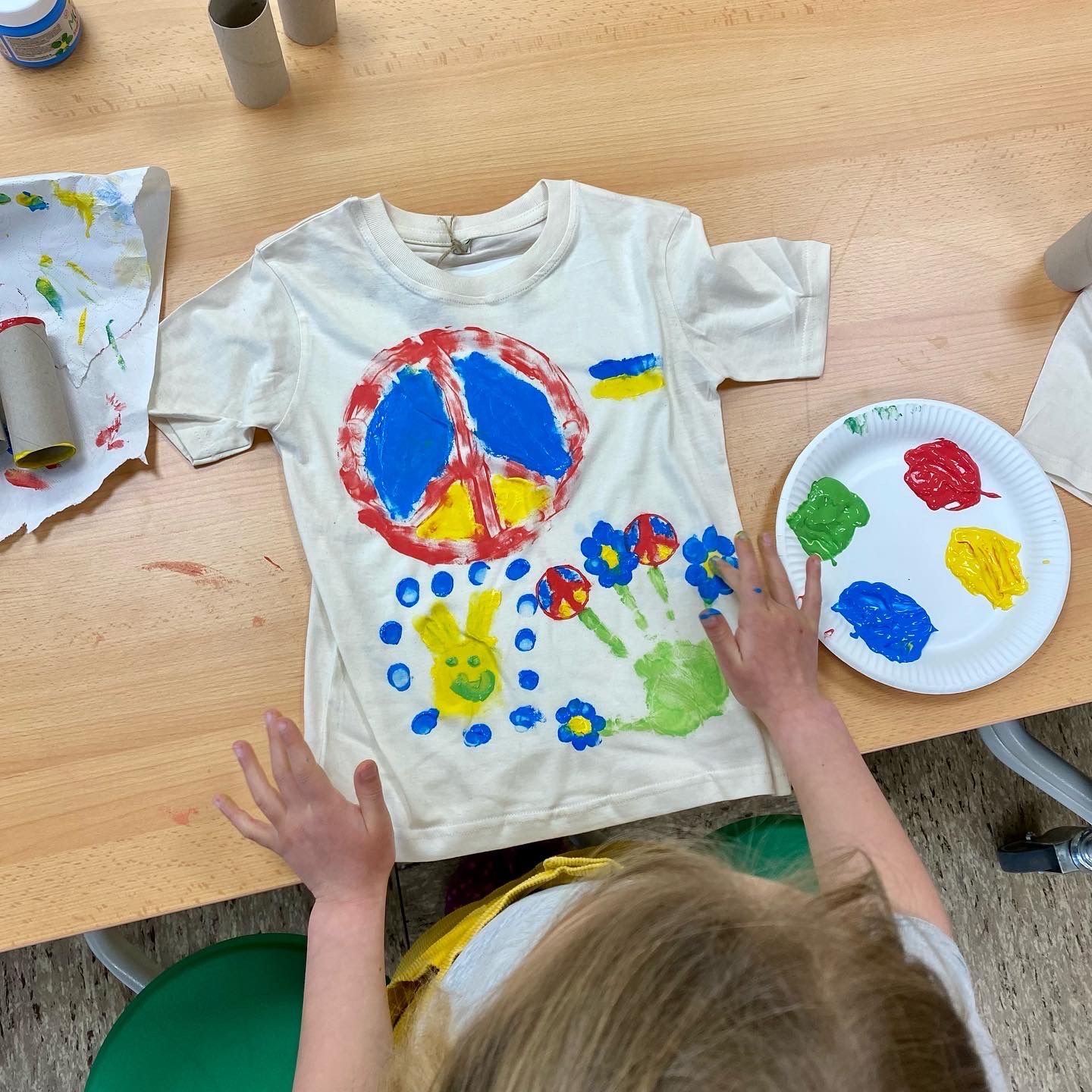Die Schülerinnen und Schüler der Diesterwegschule gestalteten T- Shirts für Kinder aus der Ukraine. :-)
