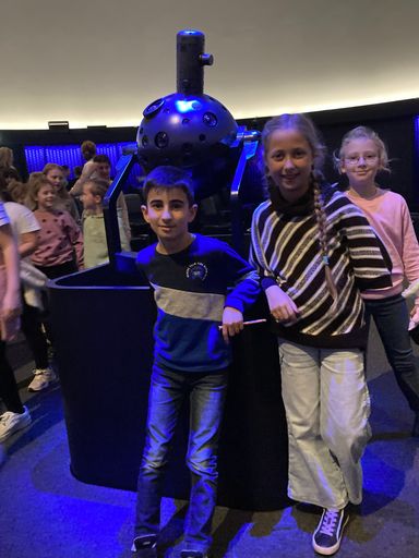 Für die Klassen 4a und 4b ging es in der vergangenen Woche ins Planetarium nach Münster, wo sie gemeinsam eine „Expedition ins Weltall“ unternahmen.