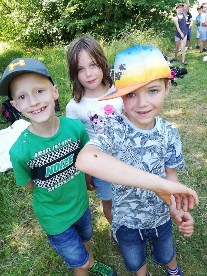 Die zweiten Klassen nahmen am Programm Blühwiese teil. Zuerst wurden die Unterschiede zwischen Wiese, Weide und Rasen besprochen. Im Anschluss daran durften die Kinder die Blühwiese im Sauerlandpark auf verschiedene Pflanzen- und Tierarten untersuchen.